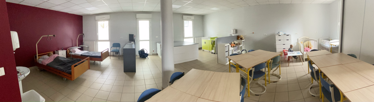 ○ Plateaux techniques avec matériels de puériculture
