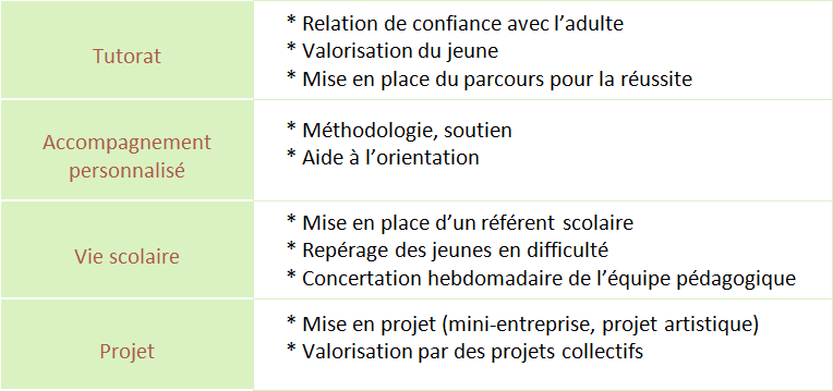 Objectifs : Permettre aux jeunes en difficultés avec le système général de :