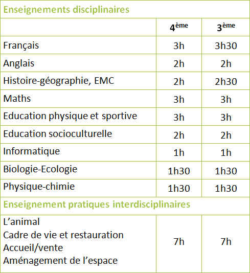 ○ Modules professionnels autour des métiers liés : à l’animal, à la vente, au cadre de vie (alimentation, puériculture, entretien des locaux et du linge…), à l’aménagement de l’espace,